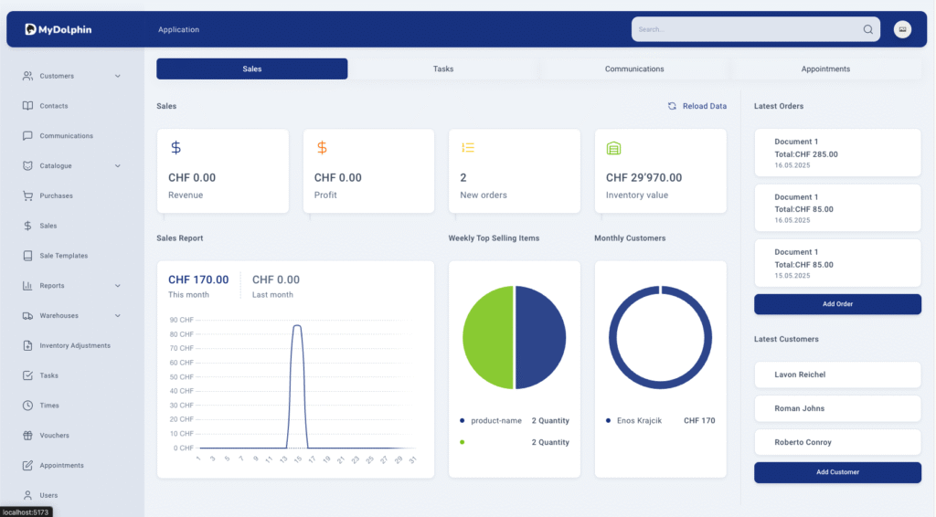 MyDolphin – Verkauf, Lager & Zeiterfassung
